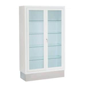 Vitrinas con peana de acero inoxidable. Estructura de acero con revestimiento en epoxy. Cuatro entrepaños de cristal fijos. Opcional: Peana pintada